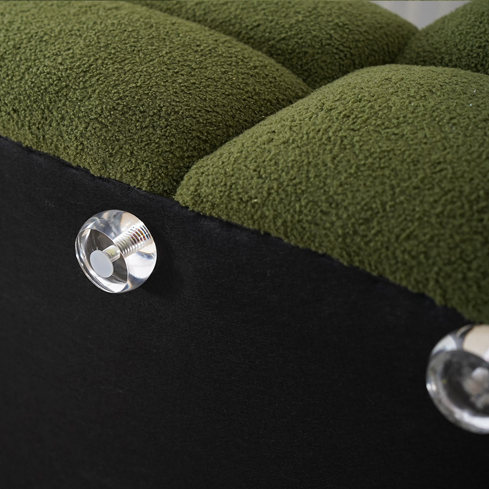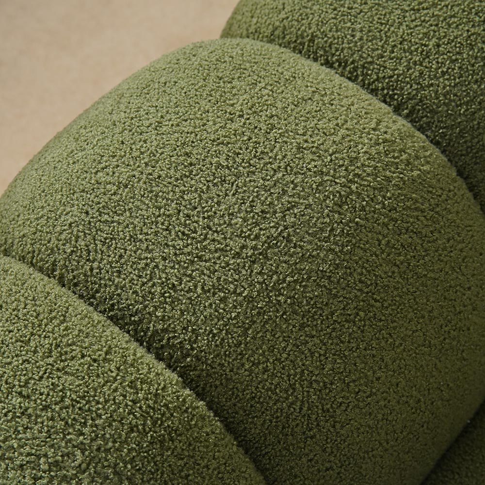 En iyi malzemeler kullanılarak titizlikle üretilen bu yeşil kanepe, zarafet ve dayanıklılığın örneğidir. Yemyeşil bir çayırı andıran markalı teddy kadife kumaşı, doğal güzelliğe bir dokunuş katıyor. Birinci sınıf karaçam ağacından yapılmış sağlam destek çerçevesi uzun süreli güvenilirlik sağlar.
